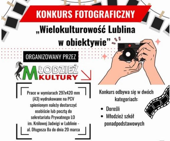 Akcje szkolne Aktualności Konkurs fotograficzny w ramach projektu „Młodzież Kultury 2.0” 17 marca 2026 Możliwość komentowania Konkurs fotograficzny w ramach projektu „Młodzież Kultury 2.0” została wyłączona